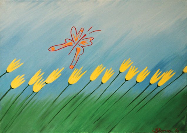 Motýl nad tulipány